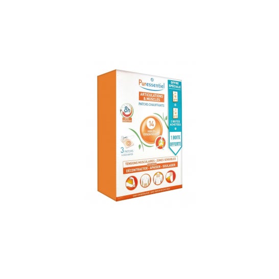 De thermische patches van Puressentiel Articulations bestaan uit 3 thermische patches die spierontspanning bevorderen en helpen om gewrichtspijn snel te verlichten.De thermische patches, samengesteld met 100% natuurlijke actieve ingrediënten die 14 essentiële oliën combineren, verspreiden gedurende meer dan 8 uur een aangenaam warmtegevoel en helpen spierspanning te verlichten.Comfortabel om te dragen en aan te passen aan elke beweging, ze kunnen op maat worden geknipt en rechtstreeks op gevoelige zones van het lichaam worden aangebracht. 8 uur warmte-effect.