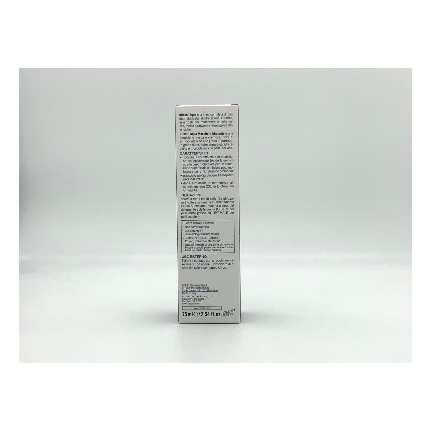 Rilastil Aqua Moisturising Mask 75ml is een gezichtsmasker dat helpt om de gezichtshuid extra te hydrateren, dankzij het hyaluronzuur met hoog en laag moleculair gewicht, ceramiden en omega 6 dat het bevat .