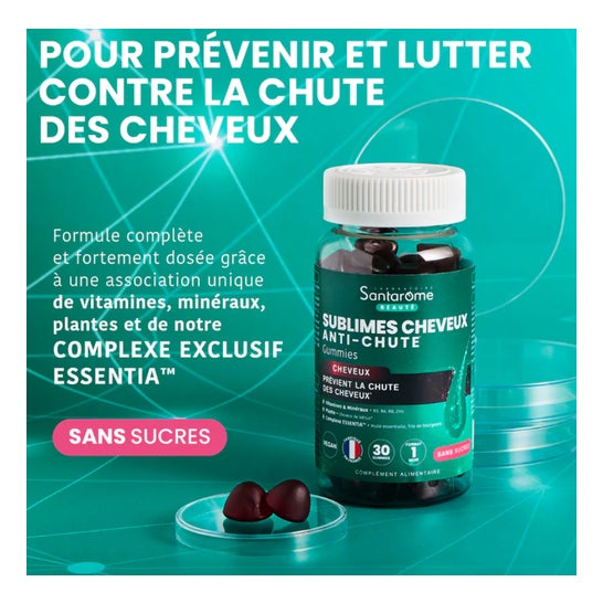 Santarome Sublime Anticaída Perzik Gummies 30st is een voedingssupplement dat vitamines, planten en gemmotherapie combineert om de haarbeauty dagelijks te ondersteunen.