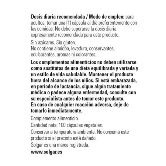 Solgar Biotin 5000μg 100vcaps is een veganistisch voedingssupplement op basis van biotine, ook bekend als vitamine B8.
