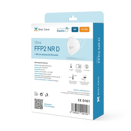 Star Care Ultra Mask FFP2 NR 10 st. zijn niet-herbruikbare FFP2 ademhalingsmaskers voor individuele bescherming. Gemaakt met 6 ultradunne lagen voor maximale bescherming en licht gewicht