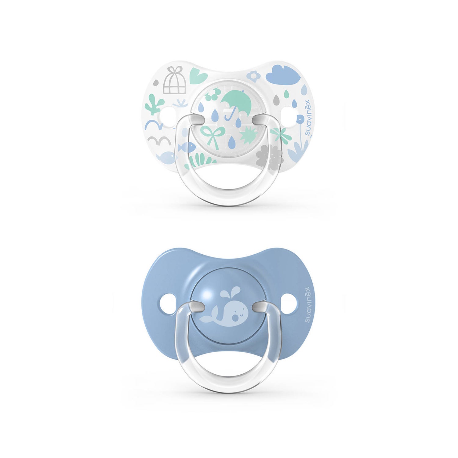 Suavinex Fopspeen SX Siliconen Memories Blauw +18M 2 stuks. *De kleur of het ontwerp kan variëren afhankelijk van de beschikbaarheid.