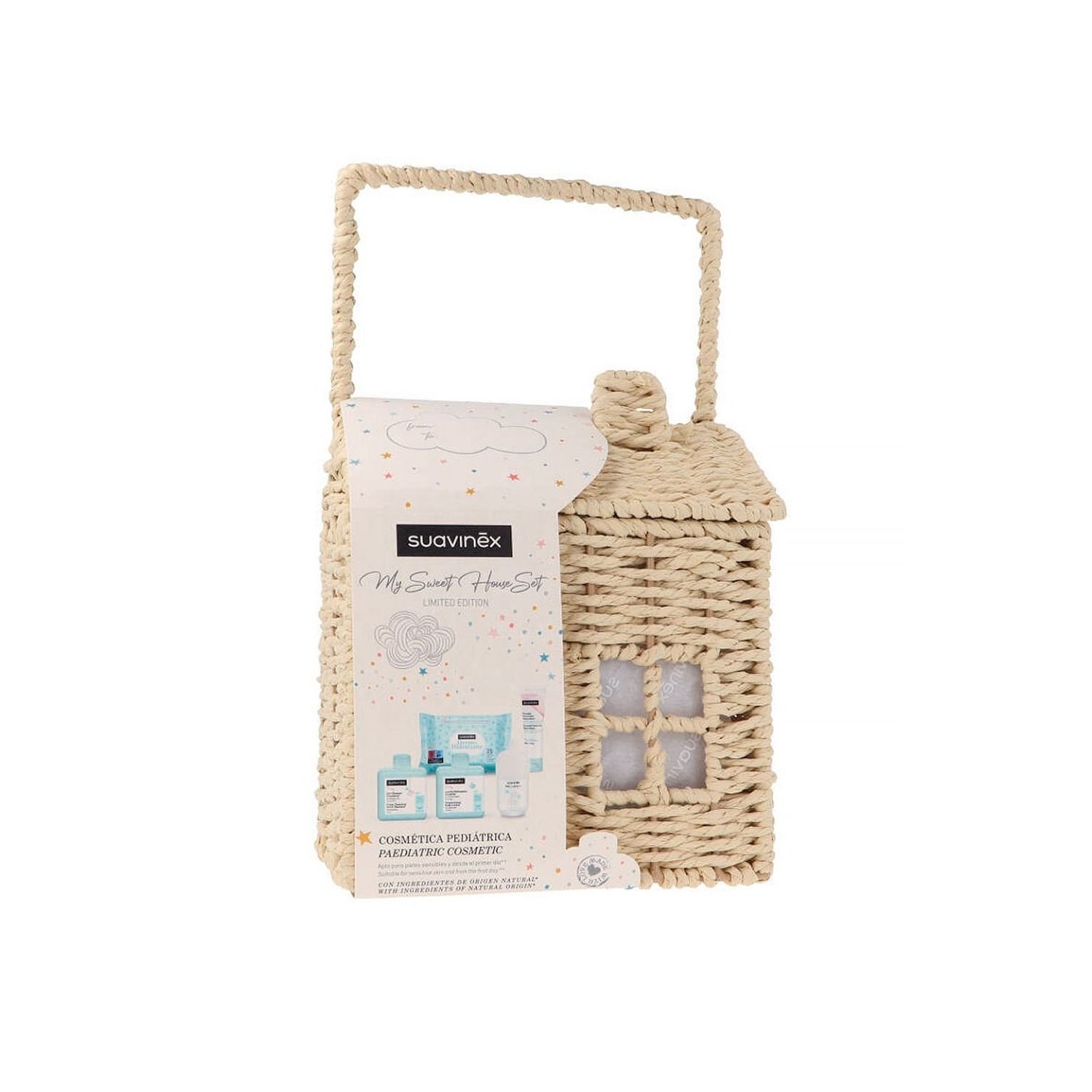 Suavinex My Sweet House Set Canastilla is een set ontworpen voor de verzorging van de baby, gepresenteerd in een aantrekkelijke rieten mand in de vorm van een huisje, ideaal om herinneringen op te slaan en de kamer van de kleine te verfraaien. Deze set bevat een selectie van cosmetische producten die specifiek zijn geformuleerd voor de behoeften van de delicate huid en het haar van baby's.