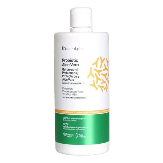 Th Pharma Gel Lichaams Probiotic Aloe Vera 750 ml is een douchegel met natuurlijke probiotica en biologische aloë vera. Het is geschikt voor droge, gevoelige en geïrriteerde huid. Het bevordert de dagelijkse verzorging en helpt de natuurlijke microbiota van de huid te behouden, terwijl het hydratatie biedt.