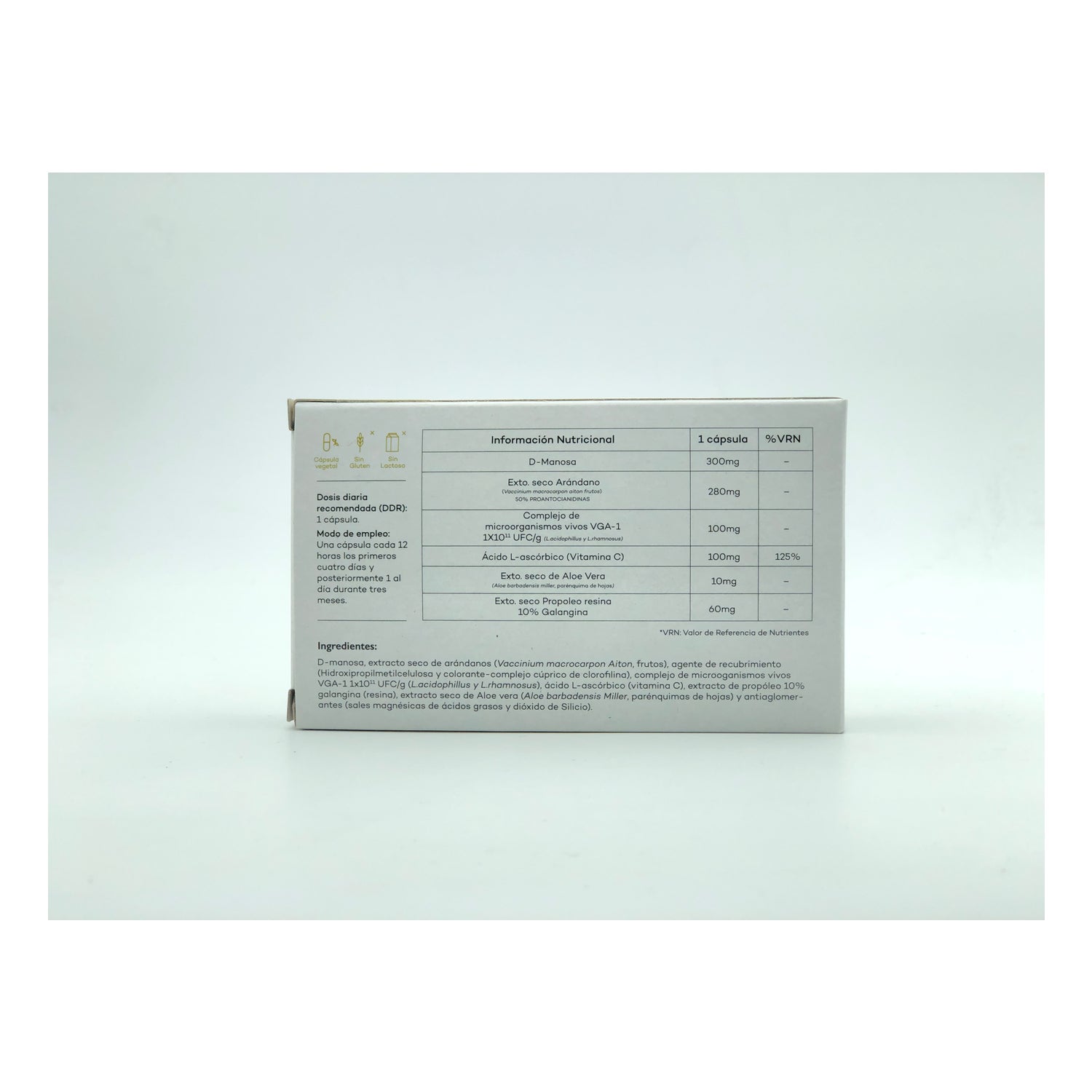 De formule op basis van droog extract van de Amerikaanse veenbes is verrijkt met propolis, aloë vera en probiotica die helpen de vaginale flora en een correcte pH te behouden. Het bevat ook vitamine C, die de urine verzuurt en de groei van bacteriën tegengaat.