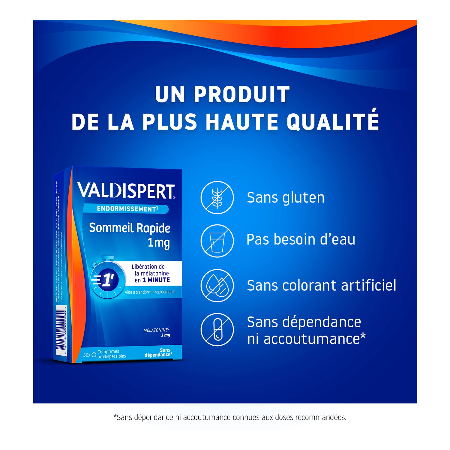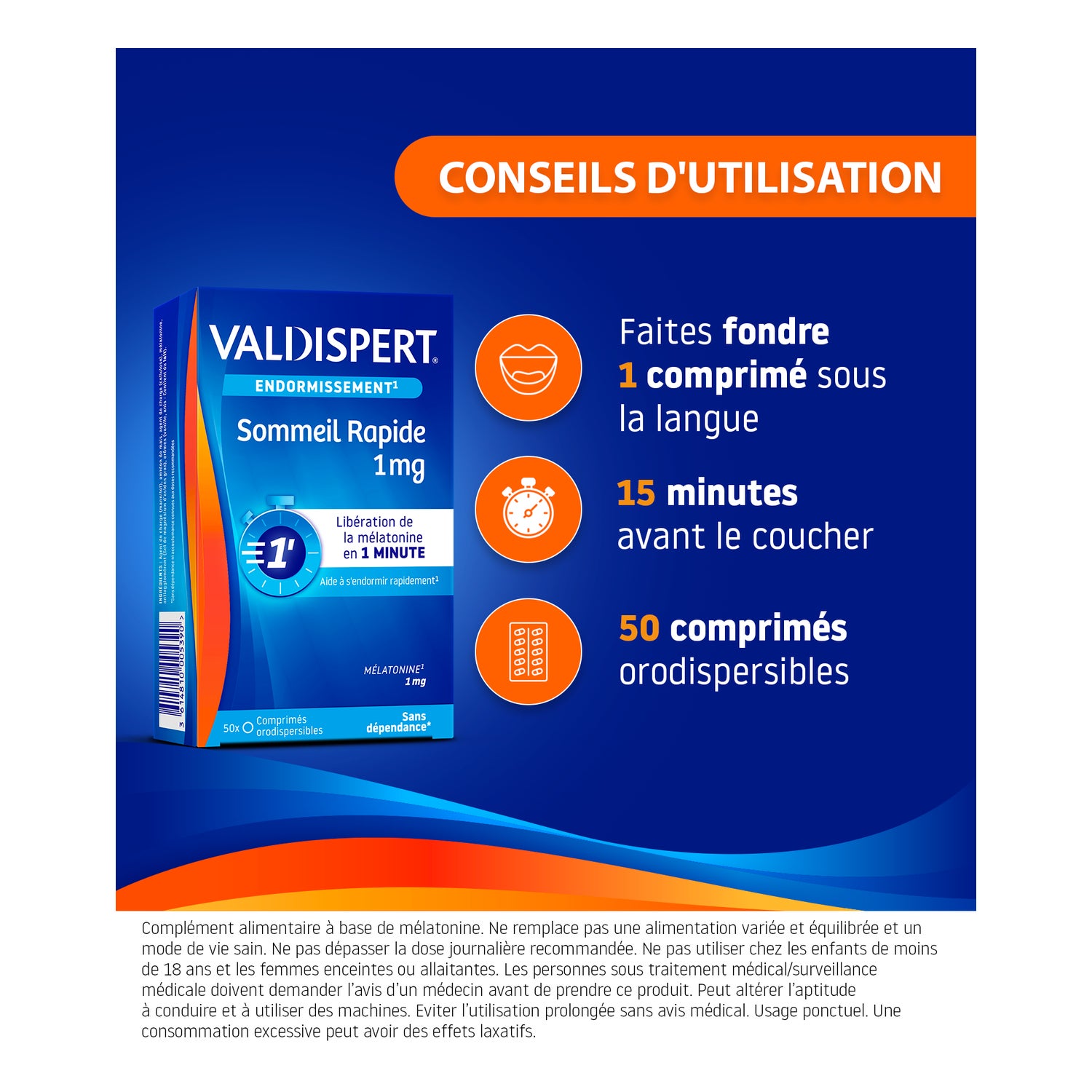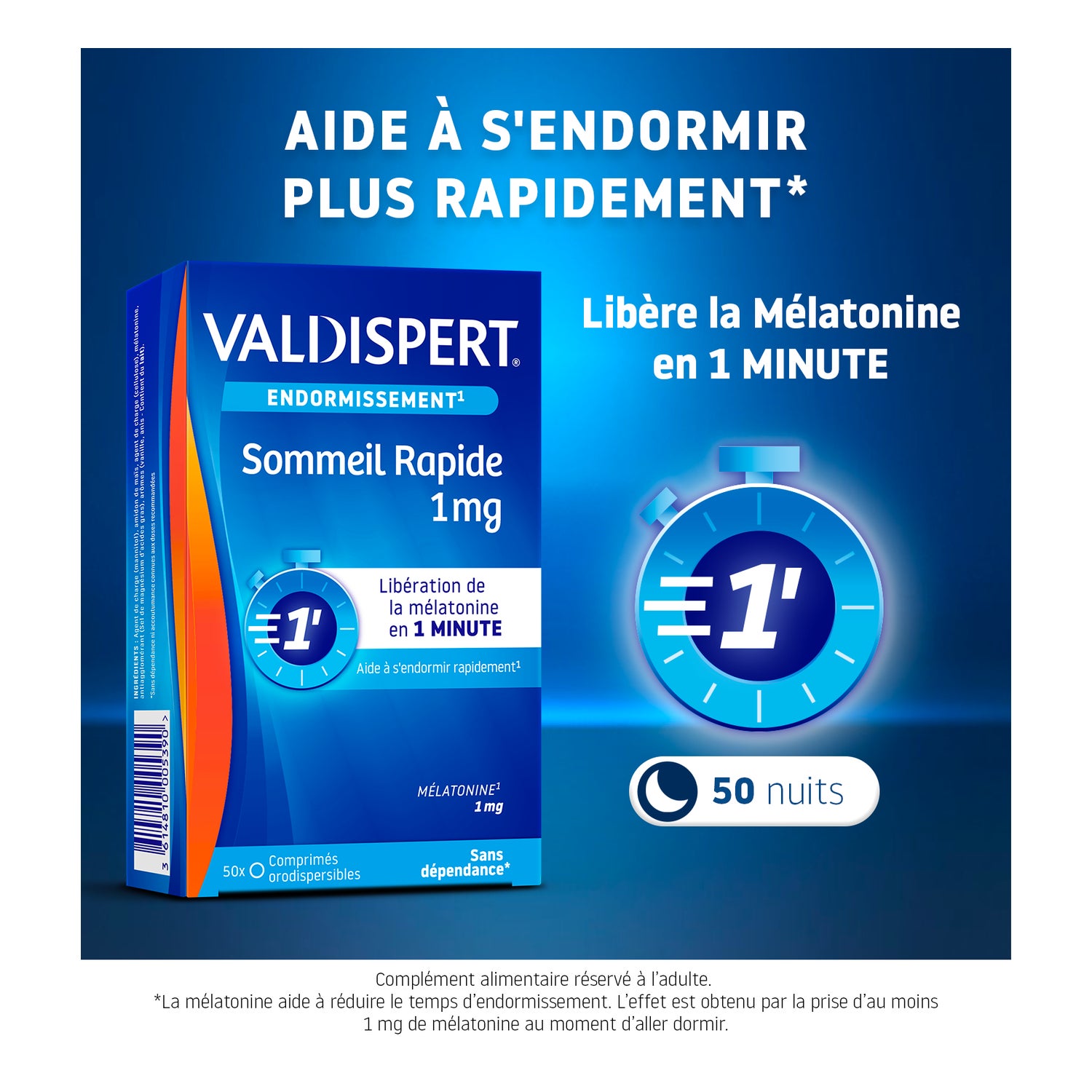 Valdispert Sommeil Rapide 1mg 50 tabletten is een voedingssupplement dat je helpt om snel in slaap te vallen. 1 mg is een dosis die snel vrijkomt en die helpt om de tijd die nodig is om in slaap te vallen te verkorten en de effecten van een jetlag te verminderen. Voedingssupplementen mogen nooit een gezonde, gevarieerde en evenwichtige voeding en een gezonde levensstijl vervangen.