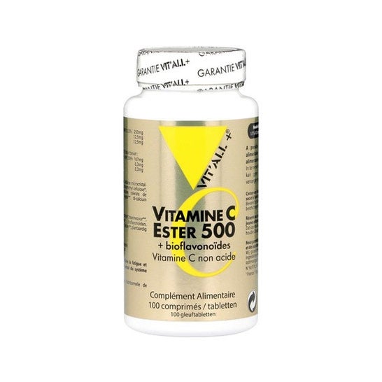 Vit'All+ Vitamine C Ester 500 100comp is een voedingssupplement dat het immuunsysteem op een milde en effectieve manier versterkt. Het maakt gebruik van Ester C, een niet-zure vorm die de gastro-intestinale problemen minimaliseert, wat het ideaal maakt voor mensen met een gevoelige maag.
