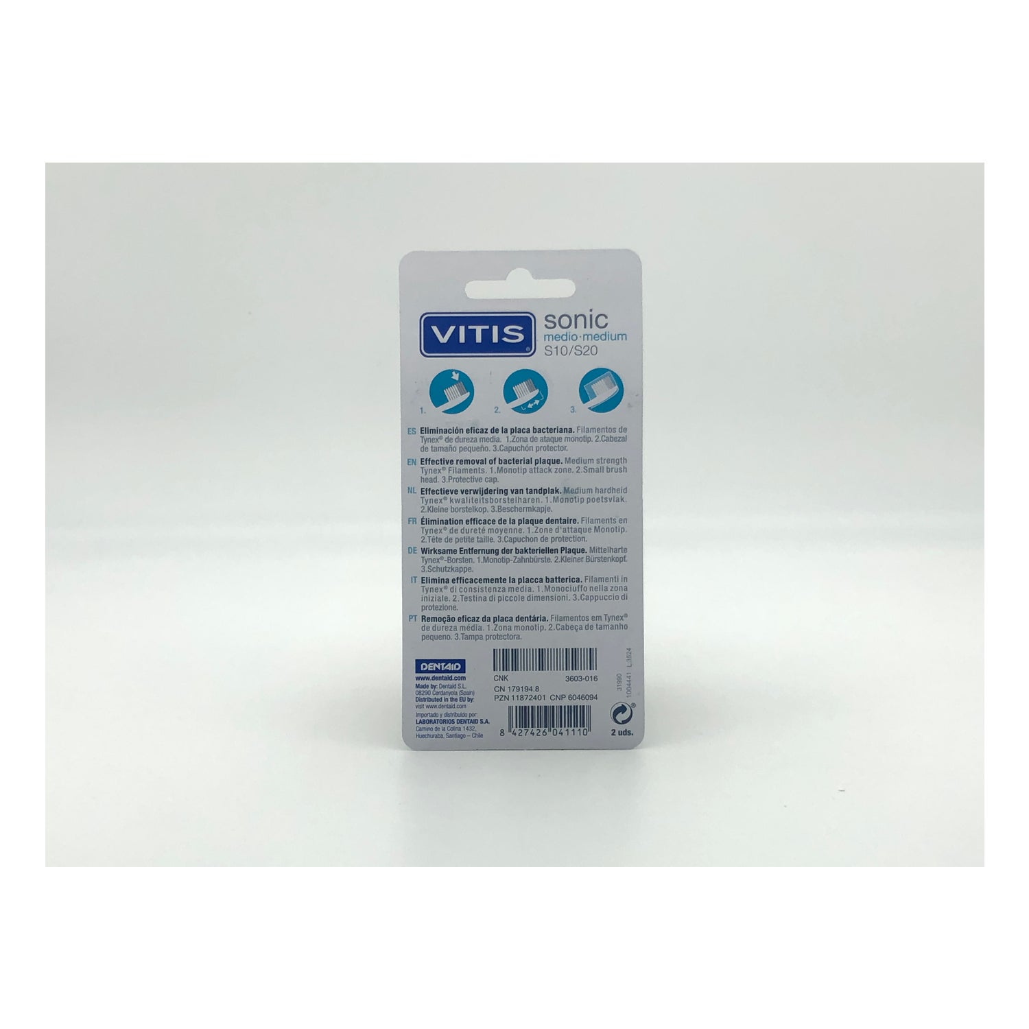 Reserveonderdelen van Vitis Sonic bevatten twee koppen die speciaal zijn ontworpen om een soepele en complete reiniging te bieden. Door de Vitis Sonic-borstel te voltooien, bereikt u een vibratiesnelheid in de filamenten waarmee u bacteriële plak kunt verwijderen.