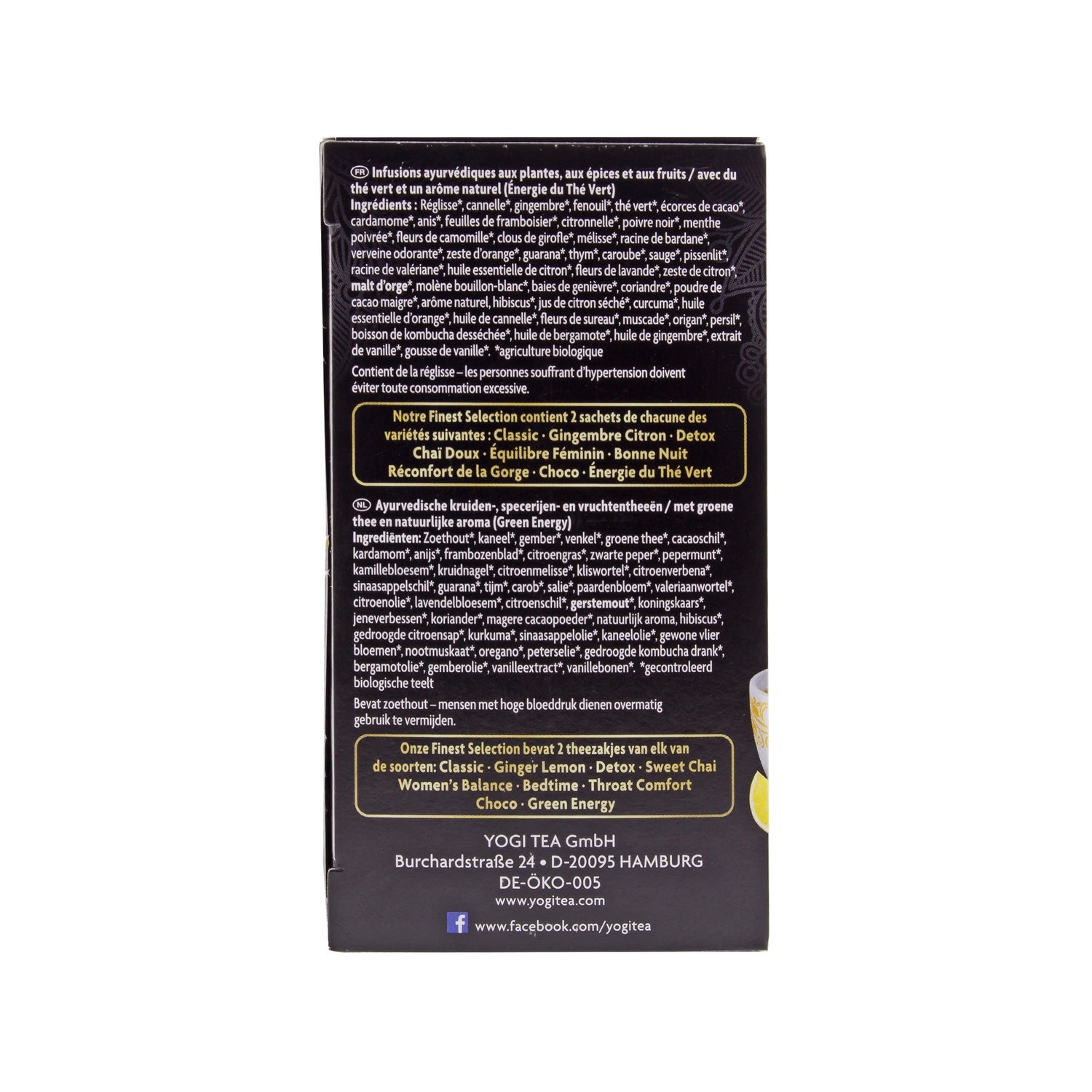 De Yogi Tea Finest Selection-box bevat een groot aantal verschillende theesoorten, zodat u de thee kunt kiezen die het beste bij u past: