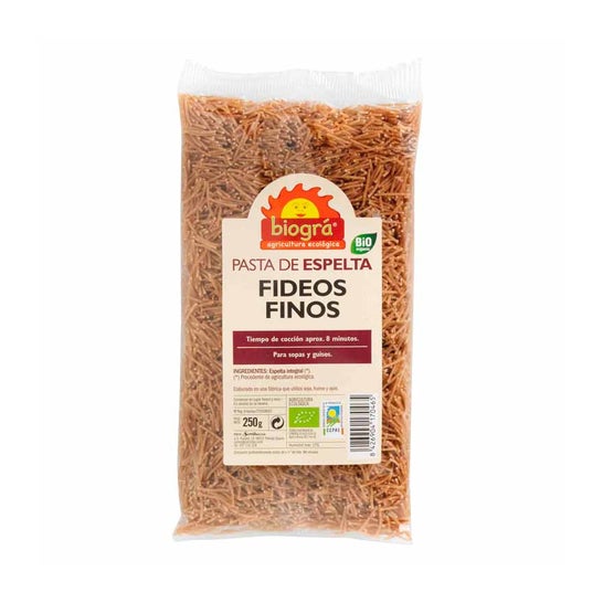 Biogra Cabello Angel Wholemeal Spelt Eco 250g to cienki makaron orkiszowy bogaty w węglowodany i białka. Szczególnie nadaje się do przyrządzania zup. Zawiera 250 g.