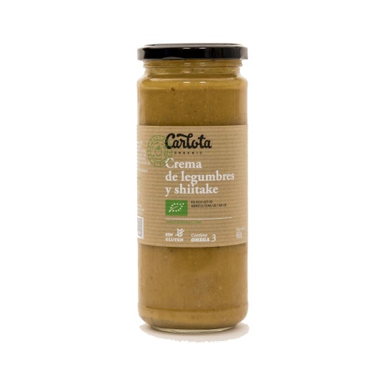 Krem z warzyw i roślin strączkowych z grzybami shiitake 100% organicznymi. Przygotowany z oleju lnianego i oliwy z oliwek extra virgin oraz odrobiną papryki.