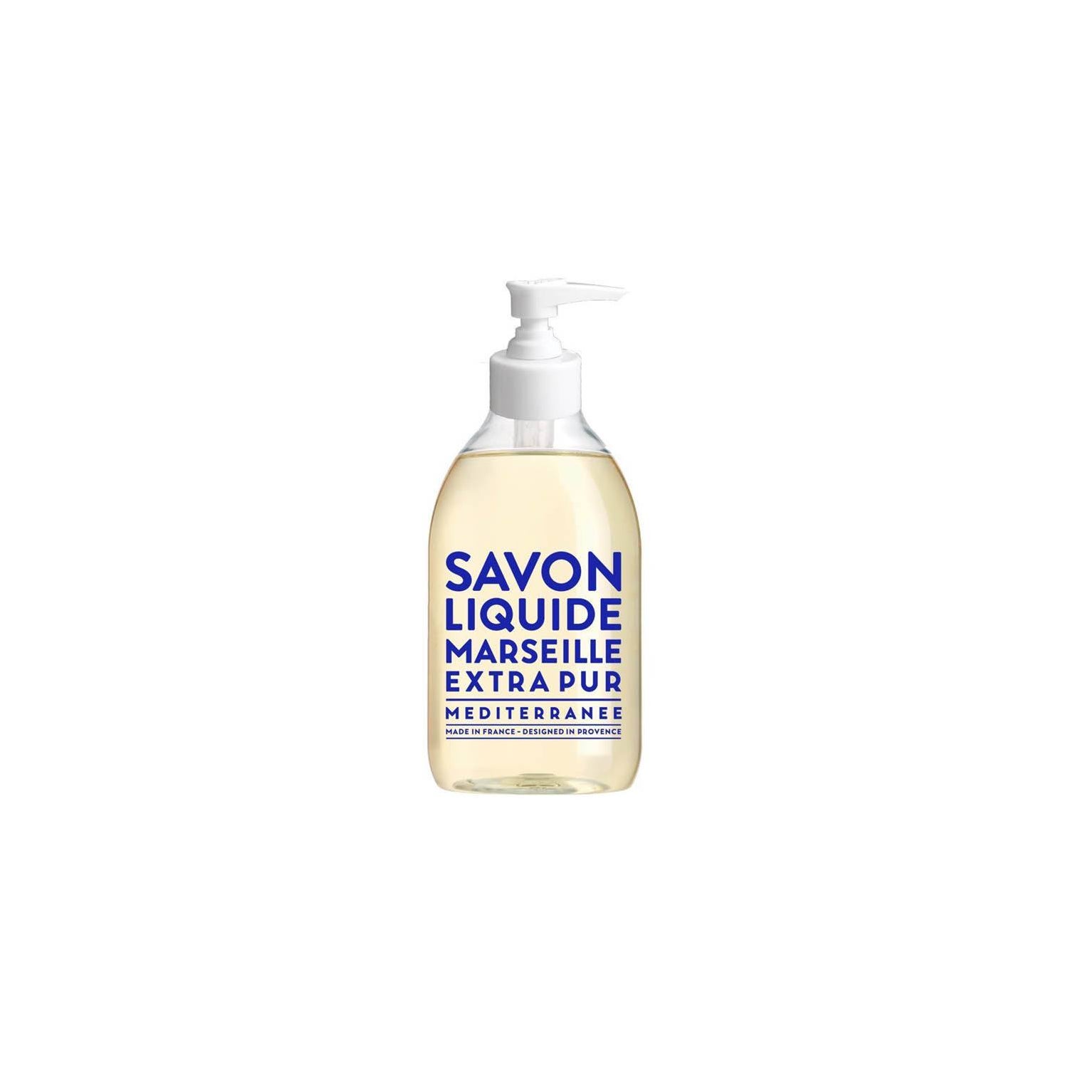 Mydło w płynie wykonane według tradycyjnej marsylskiej receptury i wzbogacone aromatami z Morza Śródziemnego. Nadaje się do oczyszczania skóry rąk i ciała. Zmydlony w kociołku zawiera oleje roślinne ze słodkich migdałów, oliwek i pestek winogron, które pomagają oczyścić skórę. Produkt naturalnie glicerynowany, testowany dermatologicznie. Nie zawiera barwników ani tłuszczów zwierzęcych. Stworzony w Grasse, odpowiedni dla wszystkich rodzajów skóry. Prezentowany w eleganckiej szklanej butelce z dozownikiem.