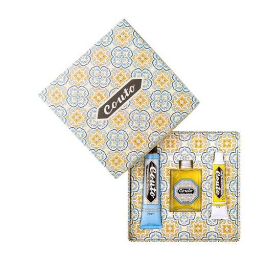 Zestaw produktów kosmetycznych do pielęgnacji i higieny wszystkich rodzajów skóry. Zawiera krem do golenia 70g, z pantenolem, gliceryną i witaminą E, które pomagają zmiękczyć zarost i ułatwiają dobre golenie. Żel po goleniu 125ml oparty na kombinacji 6 ekstraktów roślinnych i witamin, które łagodzą skórę i pomagają zapobiegać podrażnieniom. Zawiera pastę do zębów o pojemności 60 ml, odpowiednią do codziennego stosowania. Pomaga utrzymać jamę ustną w czystości oraz chroni szkliwo zębów i dziąsła. Produkty testowane dermatologicznie z organicznymi składnikami. Prezentowane w ozdobnym pudełku z kartonu nadającego się do recyklingu.