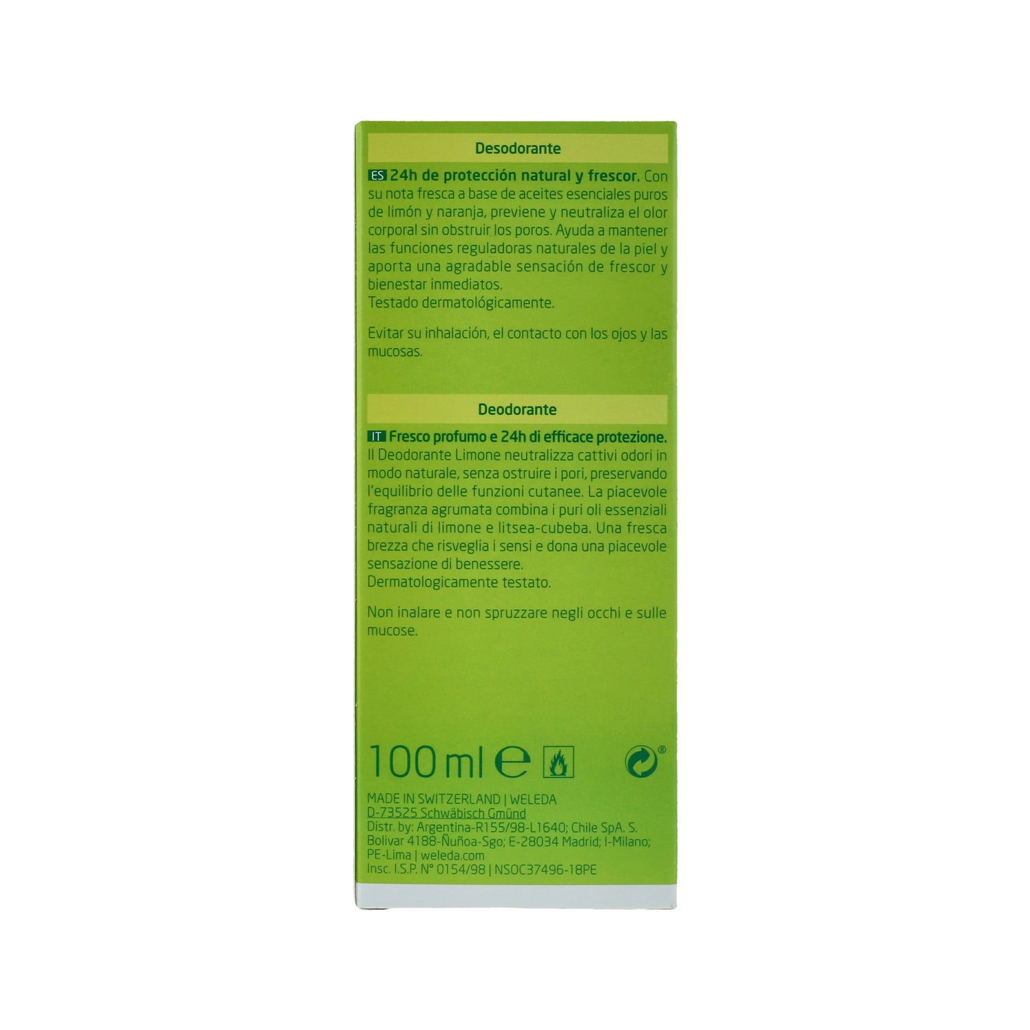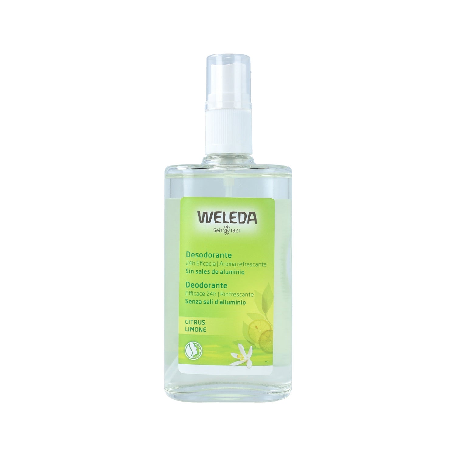 Dezodorant w sprayu cytrusowy Weleda dzięki dobranemu składowi opartemu na olejkach eterycznych z cytryny i pomarańczy pomaga zapobiegać powstawaniu przykrych zapachów do 24 godzin .
