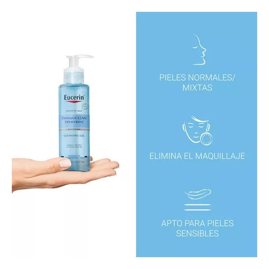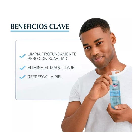 Dokładnie wyczyść twarz za pomocą Eucerin® Dermatoclean odświeżający żel oczyszczający, żel oczyszczający, który skutecznie usunie makijaż, pozostawiając przyjemne uczucie świeżości na skórze. Przeznaczony jest do skóry normalnej lub mieszanej , chociaż nadaje się również do skóry wrażliwej.
