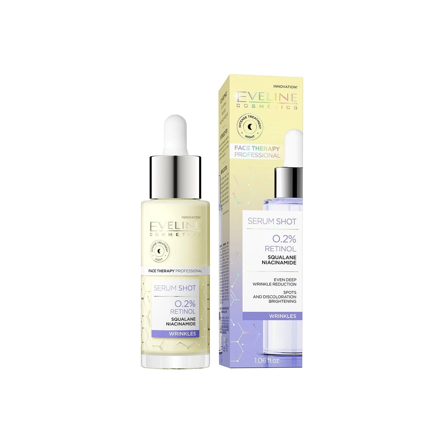 Eveline Cosmetics 0,2% Retinol Sérum Shot 30ml to serum zaprojektowane do zwalczania widocznych oznak starzenia. Produkt ten jest sformułowany z retinolem, znanym ze swoich właściwości odmładzających.
