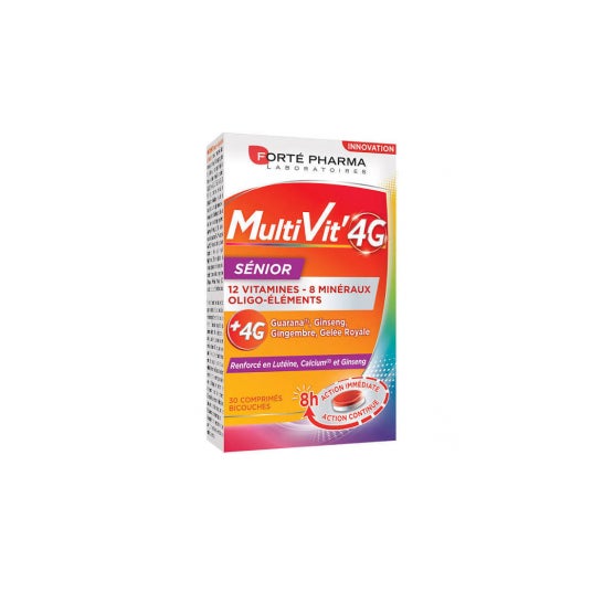 Forte Pharma Multivit'4G Senior 30Caps to suplement diety zawierający 12 witamin i 8 minerałów. Pomaga zmniejszyć uczucie zmęczenia i/lub znużenia, jednocześnie wspierając sprawność fizyczną i poznawczą.