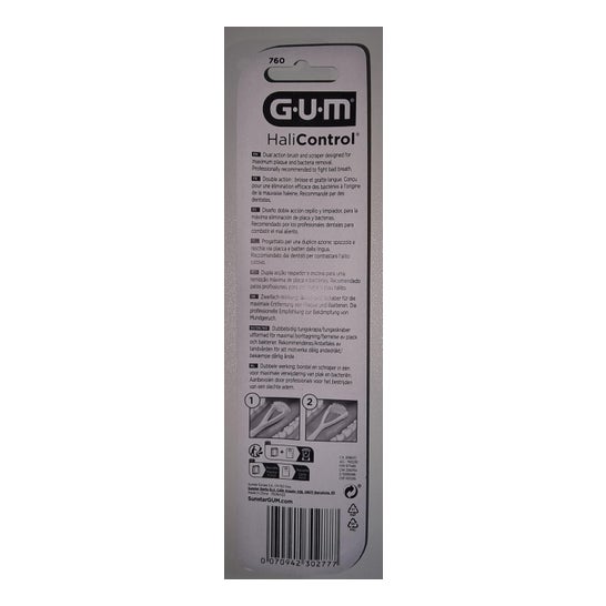 GUM Lingual cleaner double action 760 to wysoce skuteczna metoda higieny języka , zapewniająca delikatne , intensywne i głębokie czyszczenie w tym obszarze. Ma 2 rzędy włókien, aby łatwiej uzyskać dostęp do niewielkich nierówności powierzchni.
