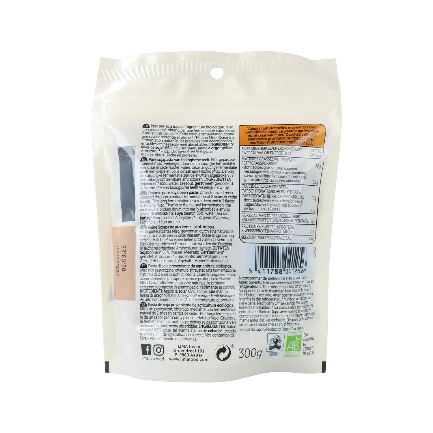 Organiczna pasta z tradycyjnej kuchni japońskiej. Hatcho miso to fermentowana pasta sojowa, znana od ponad 1300 lat na Wschodzie, używana do przyprawiania potraw. Polecane do łączenia z fasolą, ryżem, sosami, daniami zapiekanymi, zupami i gulaszami warzywnymi. Wysoka zawartość białka roślinnego. Wyprodukowane z ekologicznych ziaren soi, wody, soli morskiej i mąki jęczmiennej z upraw ekologicznych. Jedzenie wegańskie.