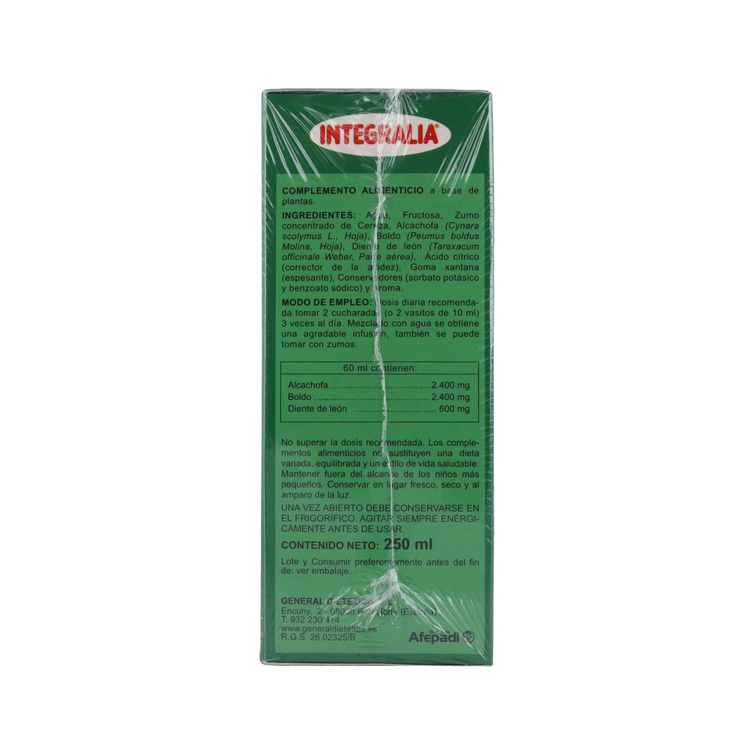 Ten suplement diety marki Integralia jest doskonałym wsparciem dla diety odchudzającej, ponieważ usuwa nagromadzone tłuszcze i poprawia retencję płynów. Jest dostępny w postaci syropu i składa się z roślin o właściwościach oczyszczających i odchudzających, które pomagają usuwać toksyny z organizmu; dlatego też jest zalecany w przypadku zatrzymywania płynów. Jego głównym składnikiem jest karczoch, znany ze swoich korzyści w leczeniu toksyn wątroby oraz poprawiania funkcji żółciowych. Jest również dobry dla cholesterolu, dzięki zawartości potasu. Syrop zawiera również mniszek lekarski, który ma właściwości wątrobowe i moczopędne. Połączenie składników oczyszcza żółć i wspomaga trawienie, poprawiając wydzielanie soków żołądkowych. Produkt jest odpowiedni dla wszystkich grup wiekowych.
