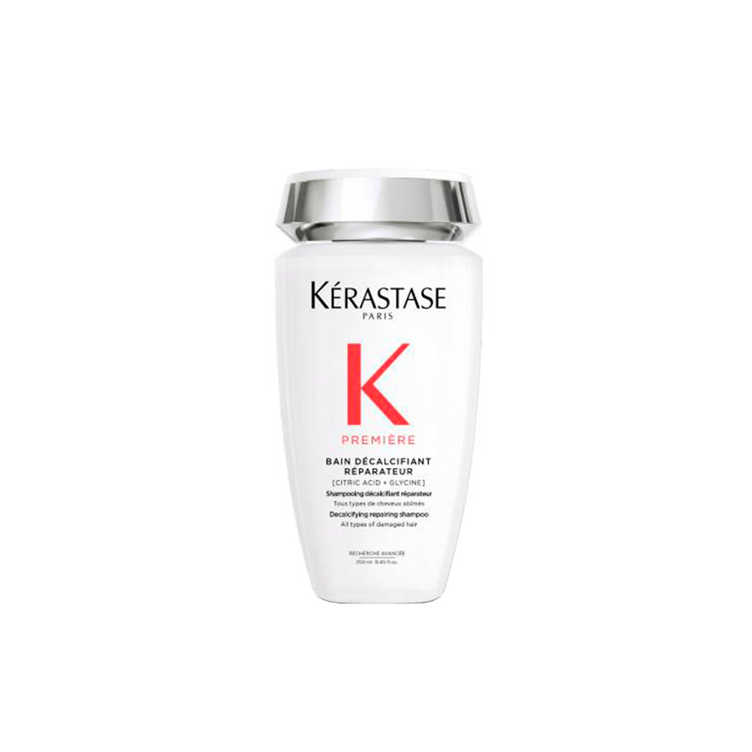 Kérastase Première Bain Décalcifiant 500ml to szampon odwapniający i regenerujący, zaprojektowany dla wszystkich rodzajów włosów, które były poddane intensywnym procesom lub są uszkodzone. Ten profesjonalny produkt jest wolny od sulfatów i zapewnia delikatne oczyszczenie zarówno włosów, jak i skóry głowy.