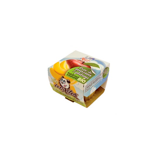Jest to 100% mus jabłkowo-bananowy z owocami ekologicznymi gotowany na niskiej temperaturze, aby zachować ich wartości odżywcze. Bez zagęstników ani barwników. Zawiera tylko cukry owocowe. Ten mus to dobra opcja na deser lub nawet na podwieczorek, ponieważ może zastąpić zdrową przekąskę, unikając podjadania. Jego opakowanie jest podzielone na dwie miseczki po 100 gramów dla większej wygody i ułatwia transport, co pozwala go spożywać o dowolnej porze i w dowolnym miejscu. Prezentacja 2x100g.