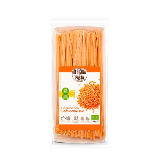 Makaron kluski z czerwonej soczewicy, w 100% z ekologicznie uprawianych, przyjaznych dla środowiska składników. Produkowany w tradycyjnym procesie "bronzo", z najwyższej jakości surowców, z wyselekcjonowanej najlepszej semoliny z pszenicy durum. Jest to produkt w 100% wegański, doskonały jako alternatywa dla tradycyjnego makaronu.