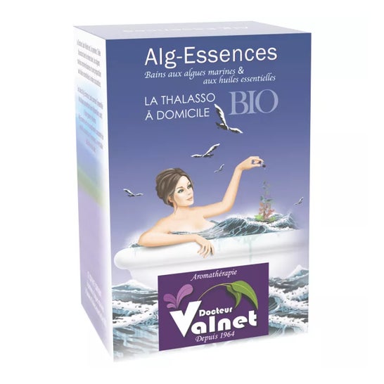 Pudełko zawiera 6 saszetek naturalnie suszonych wodorostów zebranych na morzu w Bretanii oraz 6 butelek preparatu zawierającego organiczne olejki eteryczne z rozmarynu, lawendy, terpentyny, sosny, szałwii, eukaliptusa i tymianku. Skoncentrowane wodorosty są niezwykle bogate w minerały, witaminy, aminokwasy i chlorofil. Właściwości wodorostów są wzmacniane przez wyjątkową moc dyfuzyjną olejków eterycznych. Wiosną i jesienią należy stosować od 2 do 3 kąpieli tygodniowo. INFORMACJEDocteur Valnet Alg-Essences La Thalasso à Domicile jest zalecany w przypadku ogólnego zmęczenia i jako skuteczne uzupełnienie reżimu odchudzania. WSKAZANIA