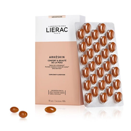 Suplement diety o podwójnym działaniu, który łagodzi i poprawia ogólny wygląd skóry. Doskonały sojusznik od pierwszych objawów menopauzy. Zawiera 99,9% składników pochodzenia naturalnego - wegański. Zawiera szafran: objawy menopauzy zostaną złagodzone. Olej arganowy, kamelia i wiesiołek, witaminy B9 i D. Selen. Przeznaczony dla kobiet zaczynających doświadczać zmian hormonalnych spowodowanych menopauzą.