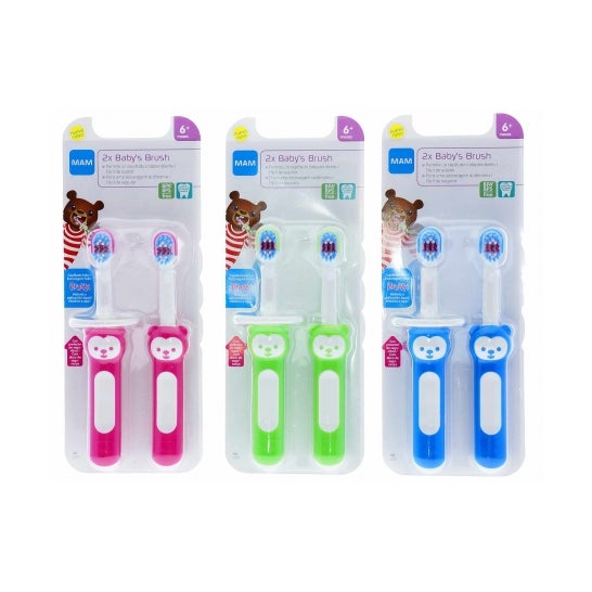 Mam Baby Brush Szczoteczka do zębów dla niemowląt +6M 2 sztuki to szczoteczka przeznaczona do codziennej higieny i pielęgnacji jamy ustnej niemowląt od 6 miesiąca życia. Zachęca do samodzielnego szczotkowania i jest dostosowana do potrzeb niemowląt