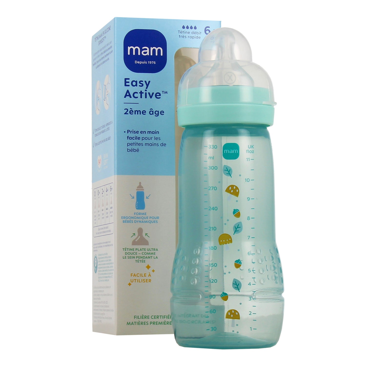 Mam Easy Active Biberón Tetina Flujo Muy Rápido +6M Ice 330 ml