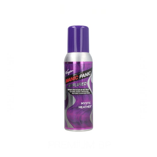 Manic Panic Amplified Color Tinte Spray Mystic Heather 100ml to idealne rozwiązanie dla tych, którzy chcą szybko i bez zobowiązań zmienić swój wygląd. Ten tymczasowy spray, który łatwo aplikuje się na całe włosy, oferuje żywy odcień fiołkowej orchidei z różowymi tonami.