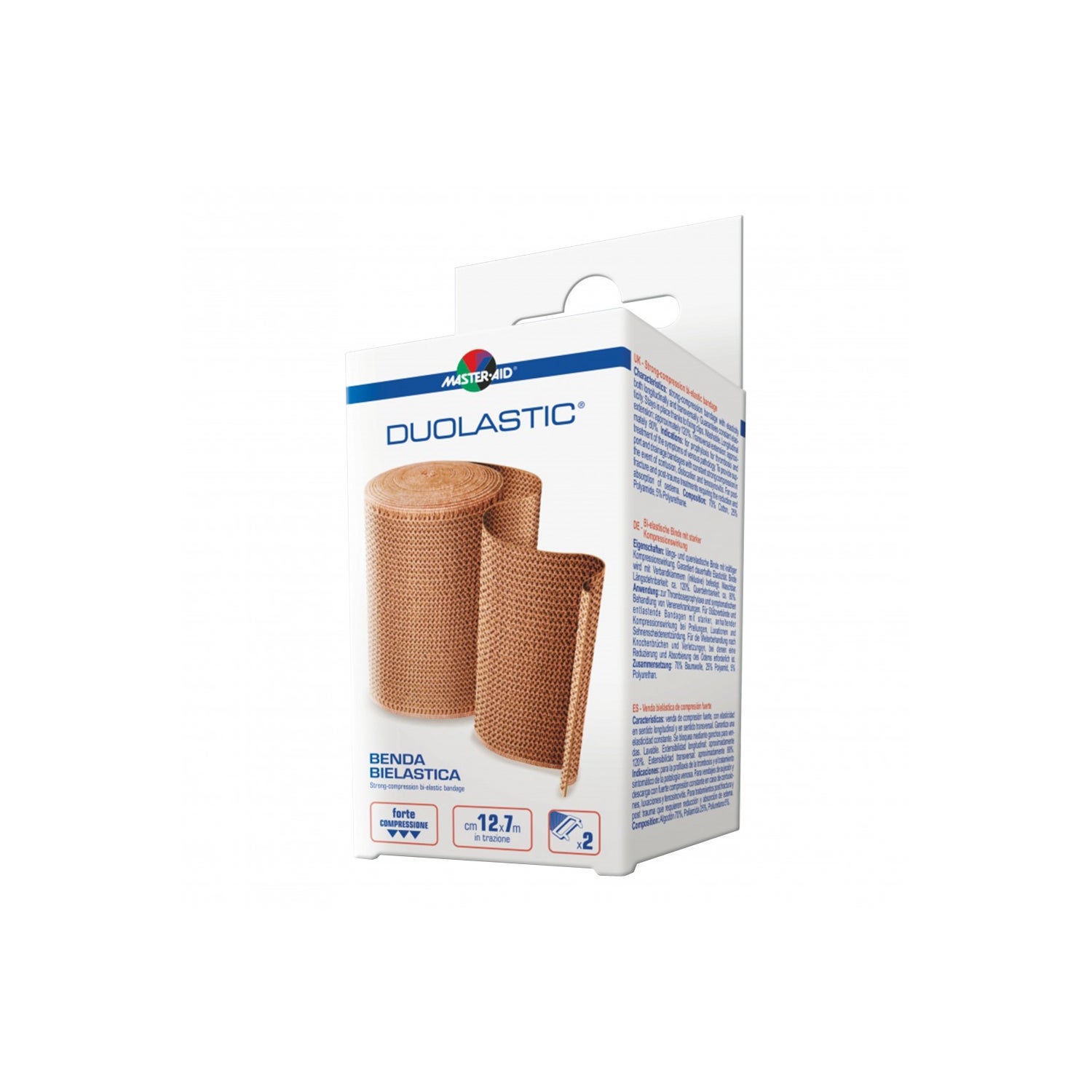 La venda Master-Aid Duolastic es bielástica no adhesiva, con alta capacidad de elongación y compresión. Su borde anti-desgarramiento la hace suave en la piel y transpirable, y puede lavarse sin perder sus propiedades.