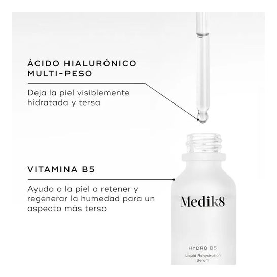 El Hydr8 es un gel-suero hidratante de fácil absorción que contiene Vitamina B5 y ayuda a dejar una piel suave e hidratada gracias a su composición de Ácido Hialurónico que produce unas mejoras notables en el estado de la piel. Además, también tiene propiedades de retención del agua que proporcionan una sensación de calma a la piel.