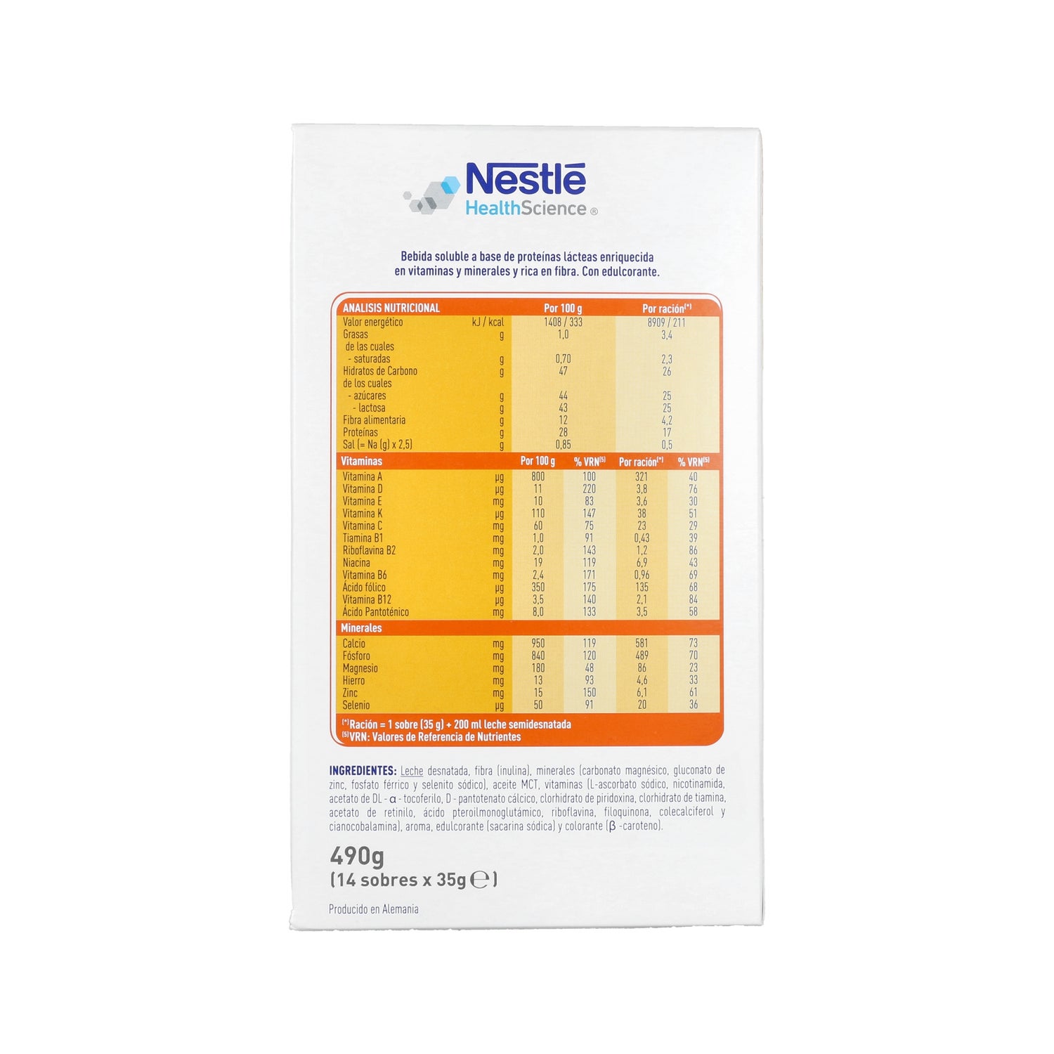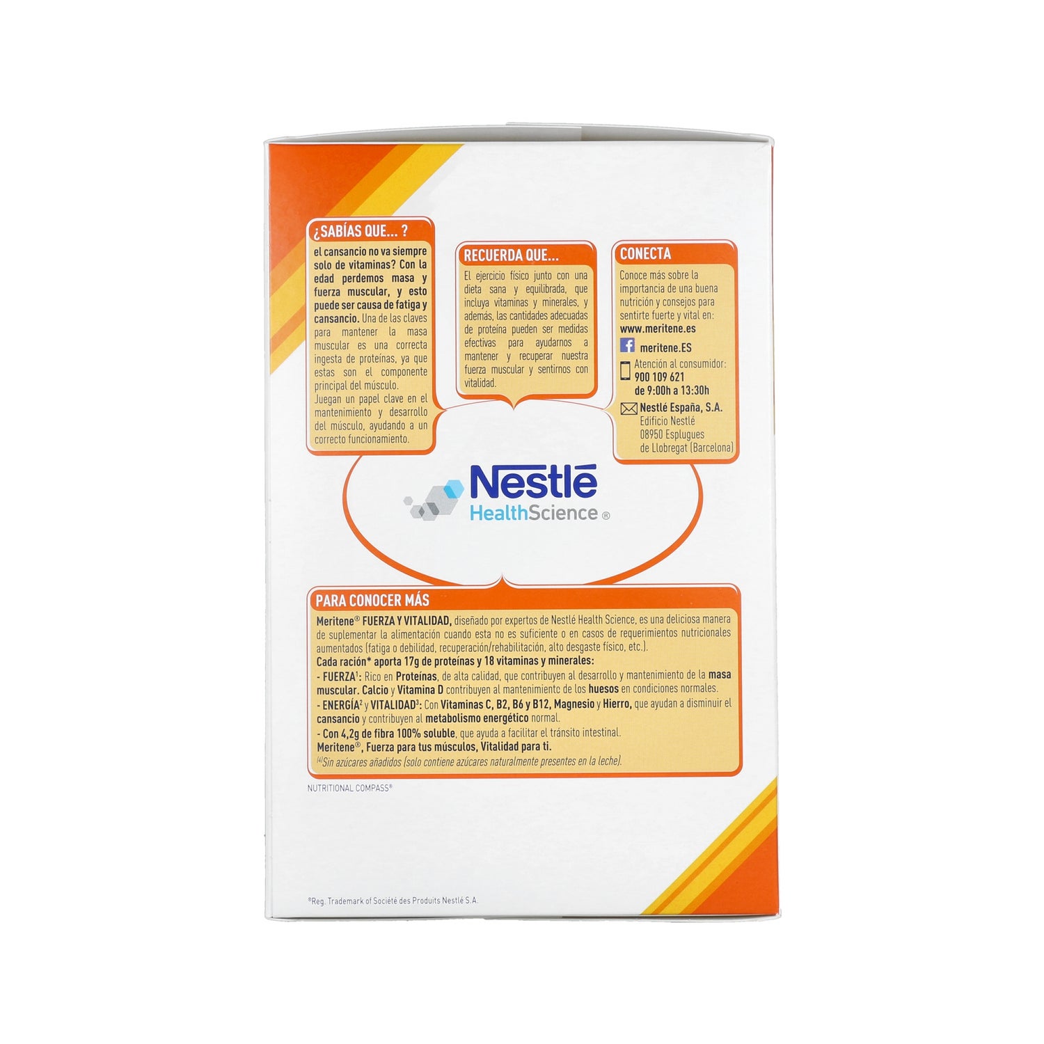 Wanilia smakowa Meritene Fibra jest produktem podobnym do klasycznych kopert Meritene, aby uzupełnić wkład posiłków, ale z tą różnicą, że w tym przypadku zawiera włókno .