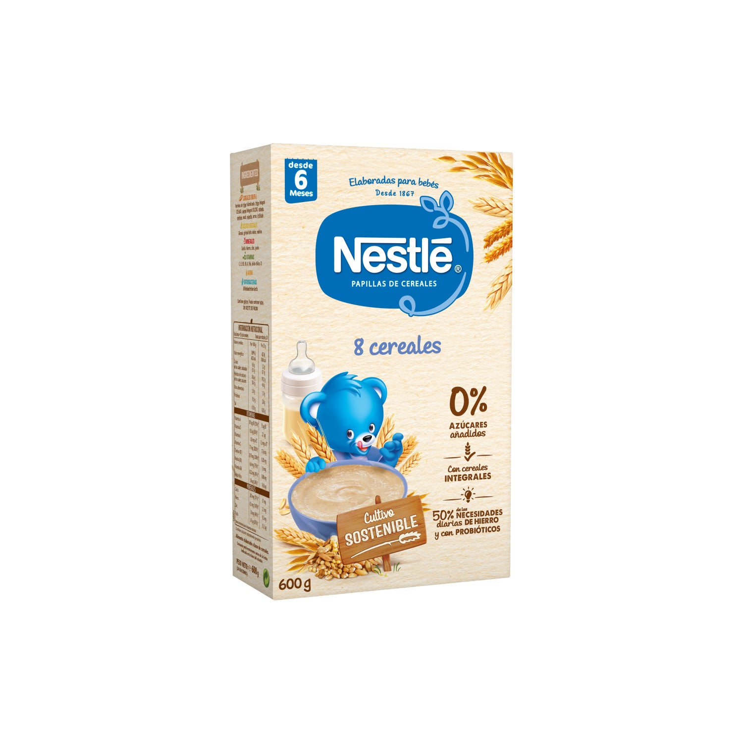 Płatki Nestlé Papillas 8 z bifidusem zostały przygotowane do karmienia najmłodszych od szóstego miesiąca, dostarczając im składników odżywczych, których potrzebują, uwzględniając stan dojrzewania organizmu.