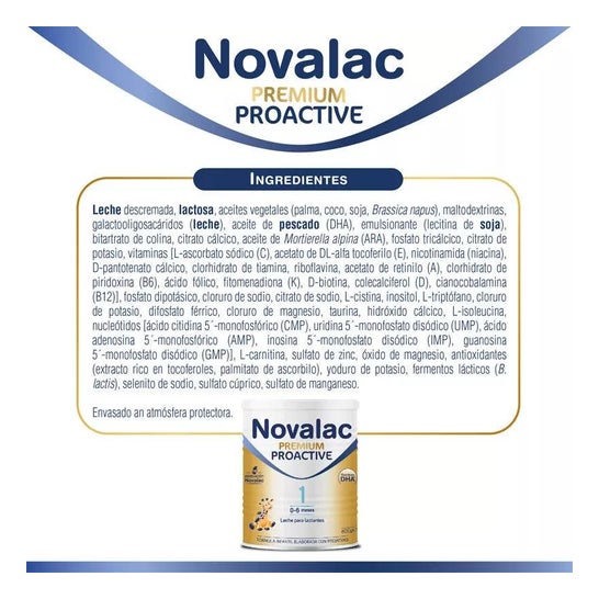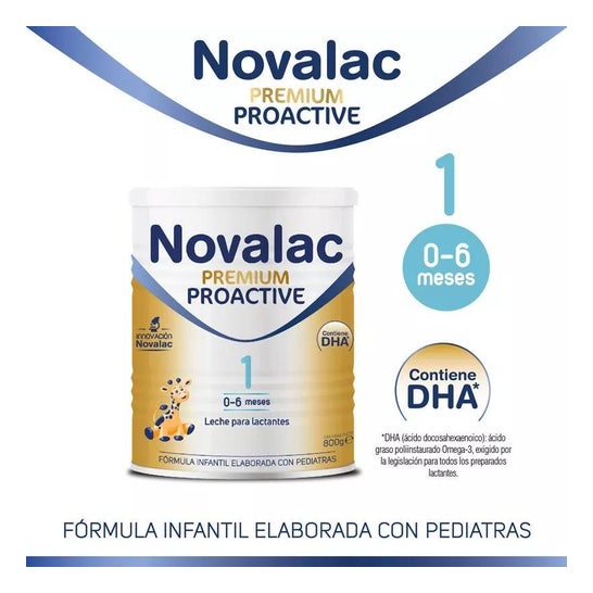 Novalac Premium Proactive 1 800g to formuła wspomagająca rozwój od 0 do 6 miesiąca życia.