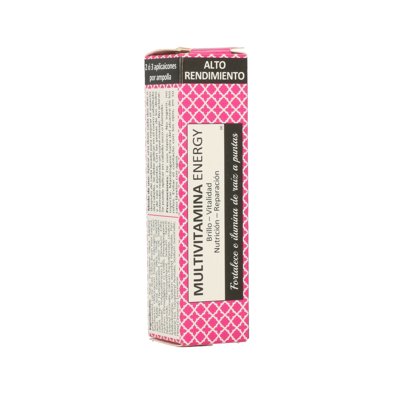 Ampułka Nuggela & Sulé Multivitamin Energy oświetla, odżywia i naprawia włosy od nasady aż po końcówki, ponieważ zapewnia witaminy E, C, B3, B5 i B6 oraz morski glikogen, esencję trzciny cukrowej i skórek cytryny.