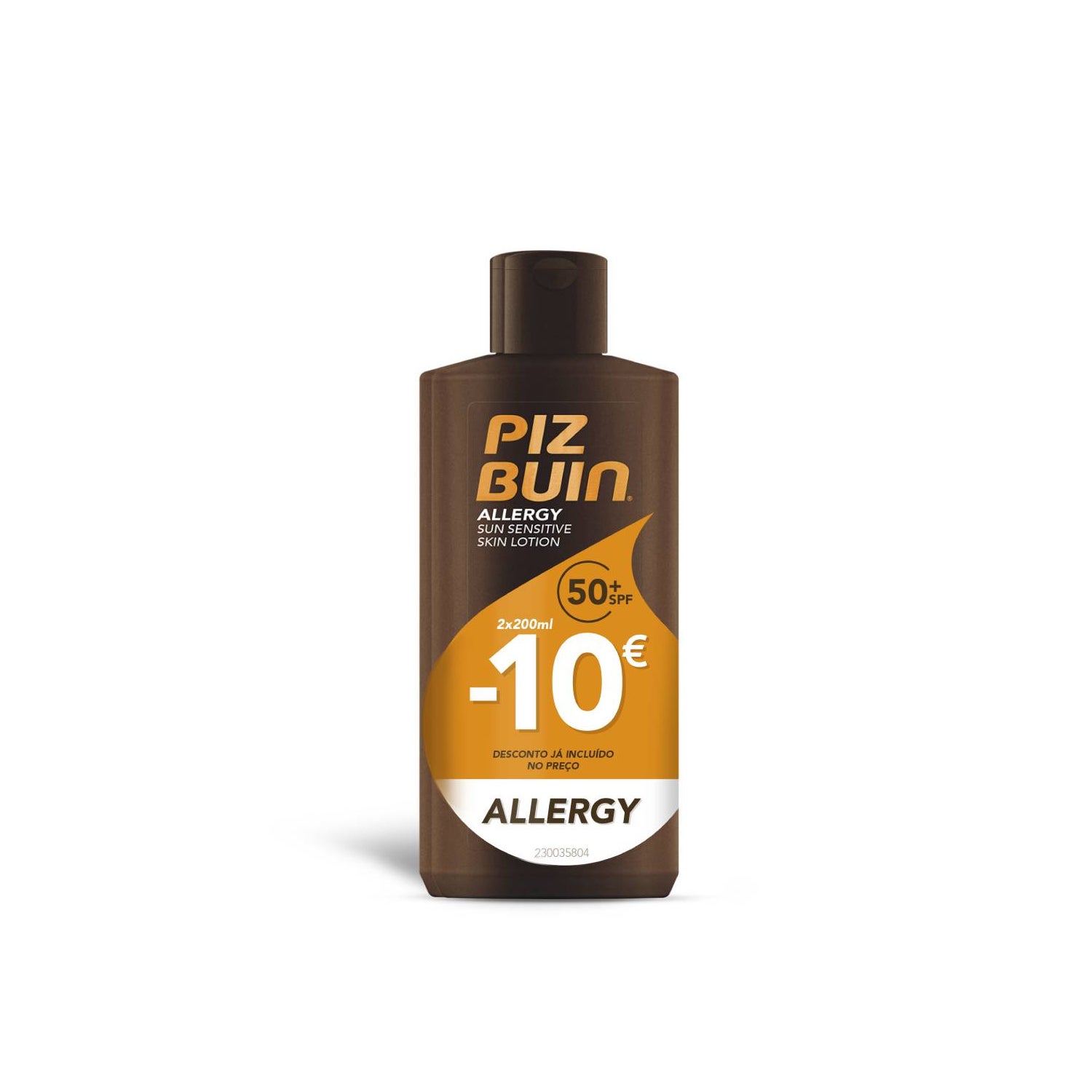Piz Buin Allergy Lotion dla wrażliwej skóry SPF50+ 2x200ml to produkt zaprojektowany specjalnie w celu zapewnienia ochrony wrażliwej skóry przed ekspozycją na słońce. Ta lotion przeciwsłoneczna zawiera filtry ochronne UVA i UVB, które działają natychmiastowo i skutecznie, gwarantując odpowiednią obronę przed szkodliwymi skutkami słońca.