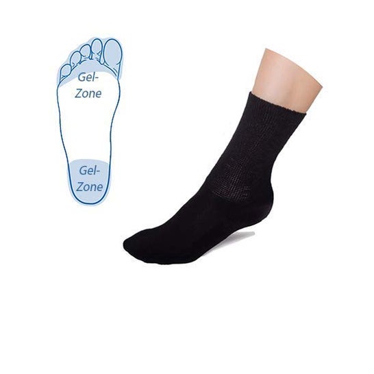 PodoSolution Chaus Diabet Ort Black39/42 to ortopedyczna skarpetka zaprojektowana w celu zapewnienia ochrony i komfortu w pielęgnacji stopy diabetyka. Jej głównym celem jest ochrona ortopedyczna stopy u osób z cukrzycą, pomagając w zapobieganiu otarciom i urazom w okolicy podeszwy, co minimalizuje ryzyko powikłań i sprzyja codziennemu zdrowiu stóp.