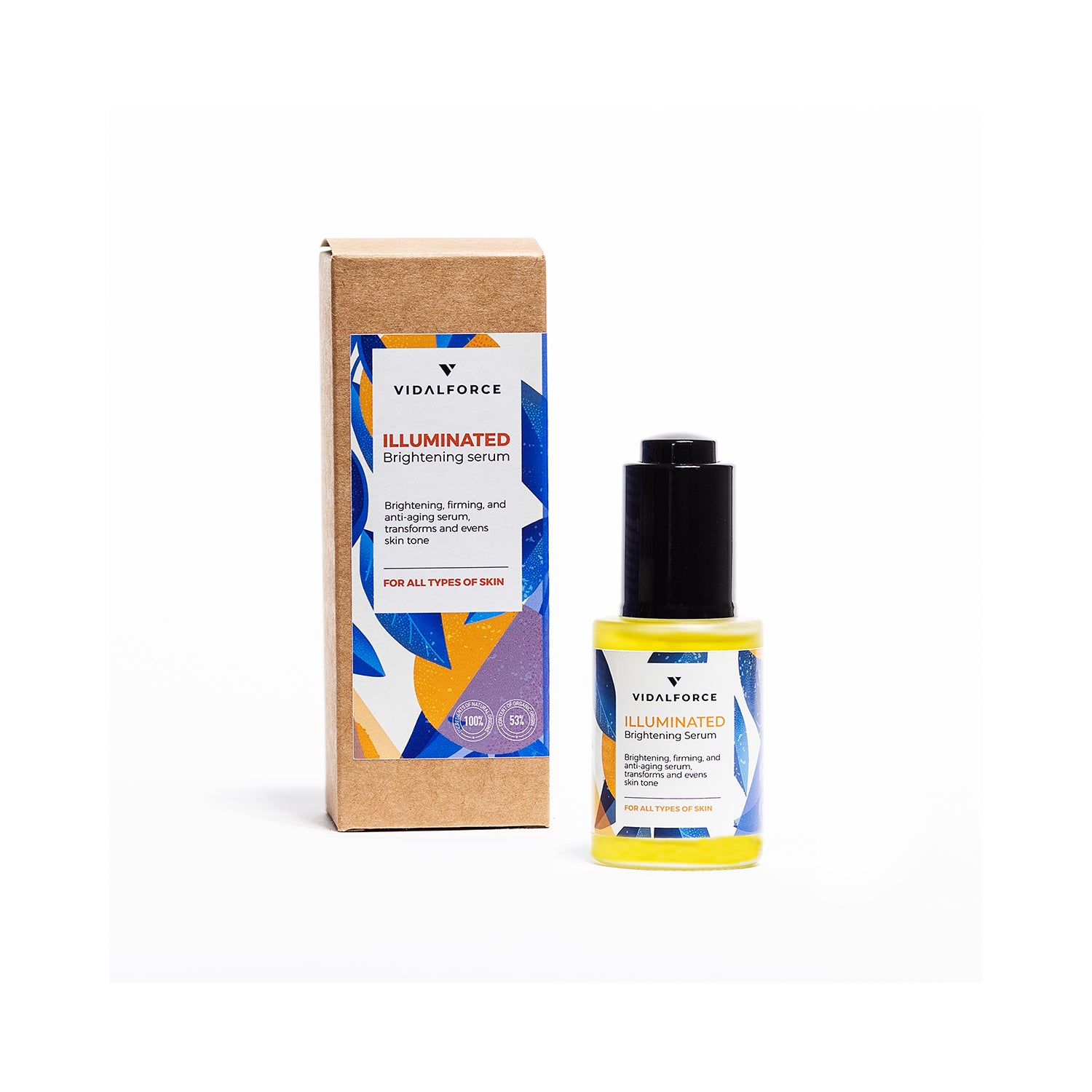 Vidalforce Illuminated Brightening Serum Facial 250ml to 100% naturalny serum, który nawilża bez efektu tłustości i pomaga w zatracaniu linii mimicznych i zmarszczek. Dzięki zawartości witaminy C, żeń-szenia, zielonej herbaty, gotu kola i olei roślinnych, między innymi składników, również przyczynia się do dodania blasku twarzy. Jest polecany dla wszystkich rodzajów skóry.