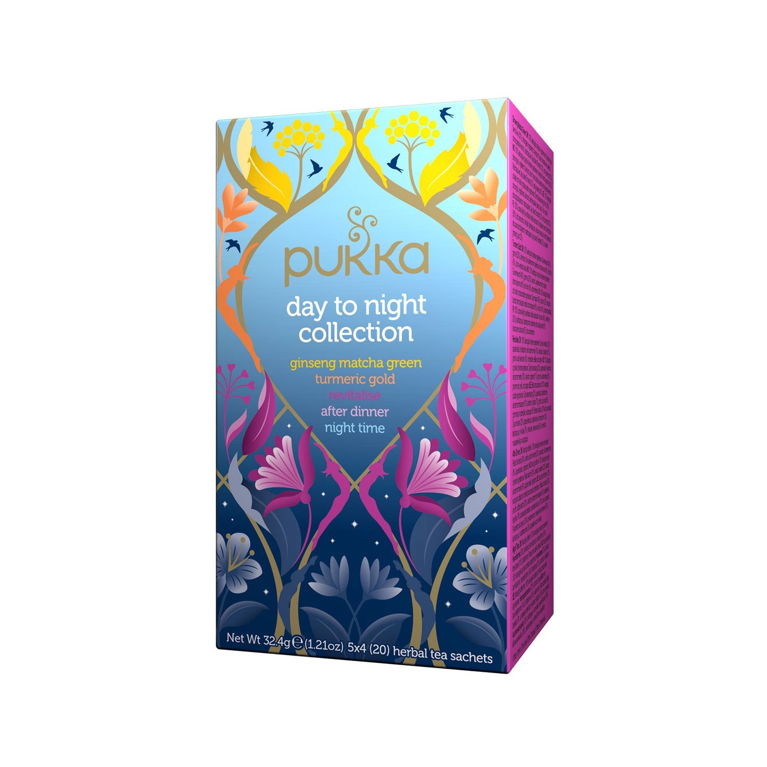 Pukka Day To Night Collection 20 Bolsitas to idealny wybór dla tych, którzy szukają integralnego dobrostanu przez cały dzień, dzięki ekologicznym naparom zaprojektowanym, aby towarzyszyć od rana do wieczora.