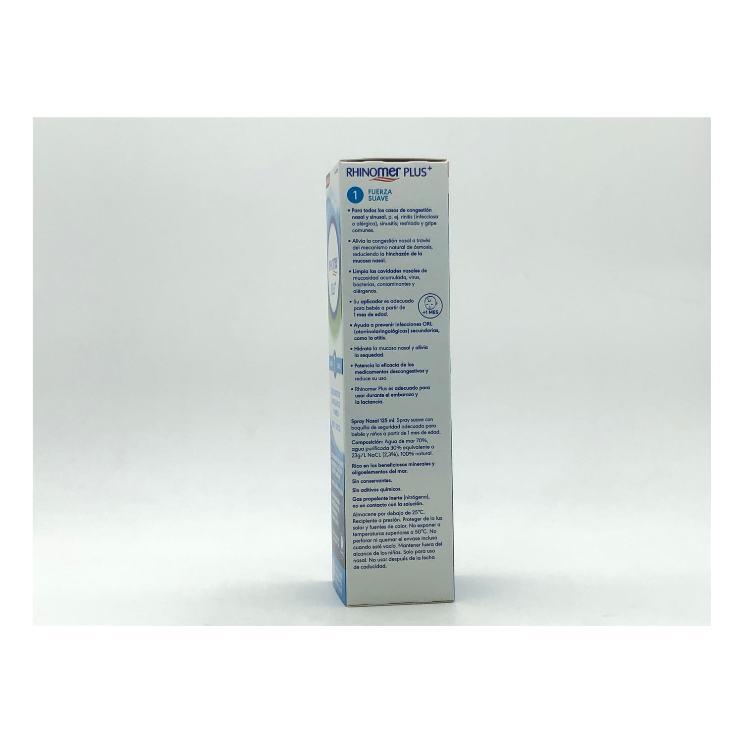 Rhinomer Plus 1 Siła Łagodna: Woda morska hipertoniczna 100% naturalna. Delikatny spray z bezpieczną końcówką odpowiednią dla niemowląt i dzieci od 1 miesiąca życia. Do wszystkich przypadków przekrwienia nosa i zatok, np. nieżyt nosa (infekcyjny lub alergiczny), zapalenie zatok; przeziębienie i grypa.