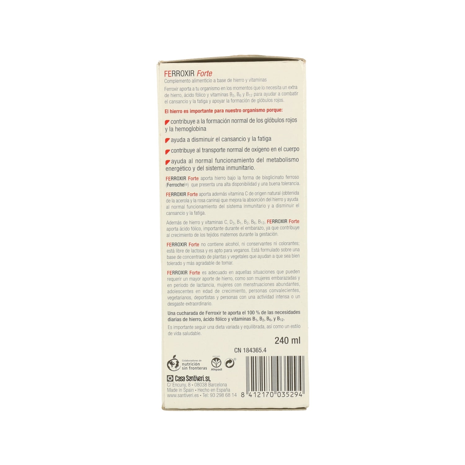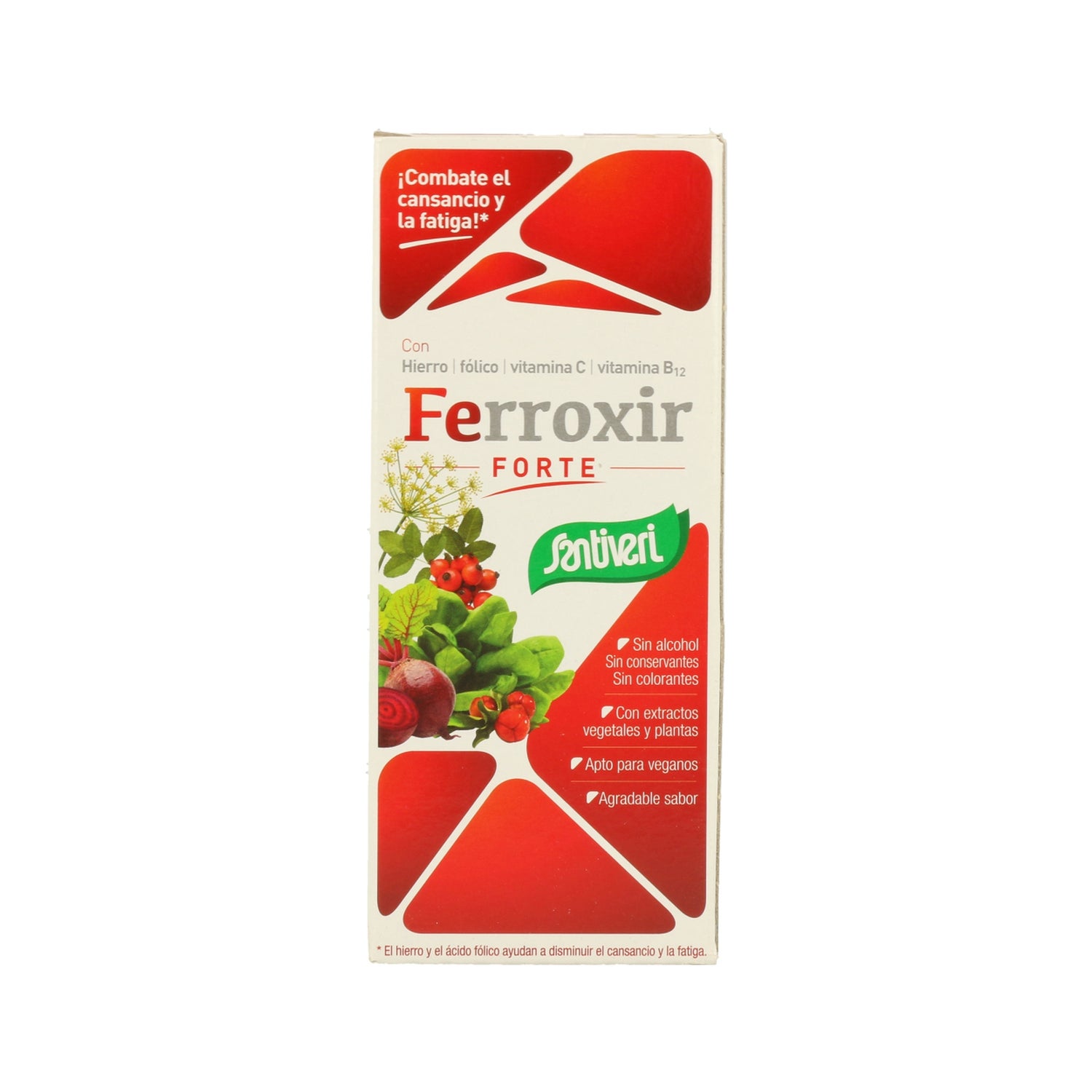 Santiveri Ferroxir Forte 240ml to syrop będący suplementem diety stworzonym specjalnie z myślą o przeciwdziałaniu uczuciu zmęczenia i znużenia. W jego składzie znajduje się żelazo, kwas foliowy oraz witaminy B2, B6 i B12, które zapewniają organizmowi dodatkową dawkę witalności i energii. Wzbogacony jest również o witaminę C, która wzmacnia układ odpornościowy i ułatwia wchłanianie żelaza. Wykonany z naturalnych składników, takich jak owoce, warzywa i rośliny, produkt ten jest cennym źródłem niezbędnych dla naszego zdrowia składników odżywczych. Dzięki Santiveri Ferroxir Forte Syrup możesz doświadczyć jego zalet, aby czuć się aktywnym i pełnym energii od 3 roku życia. Zaleca się, aby nie przekraczać zalecanej dziennej dawki i pamiętać, że suplementy diety nie zastępują zbilansowanej i zdrowej diety.