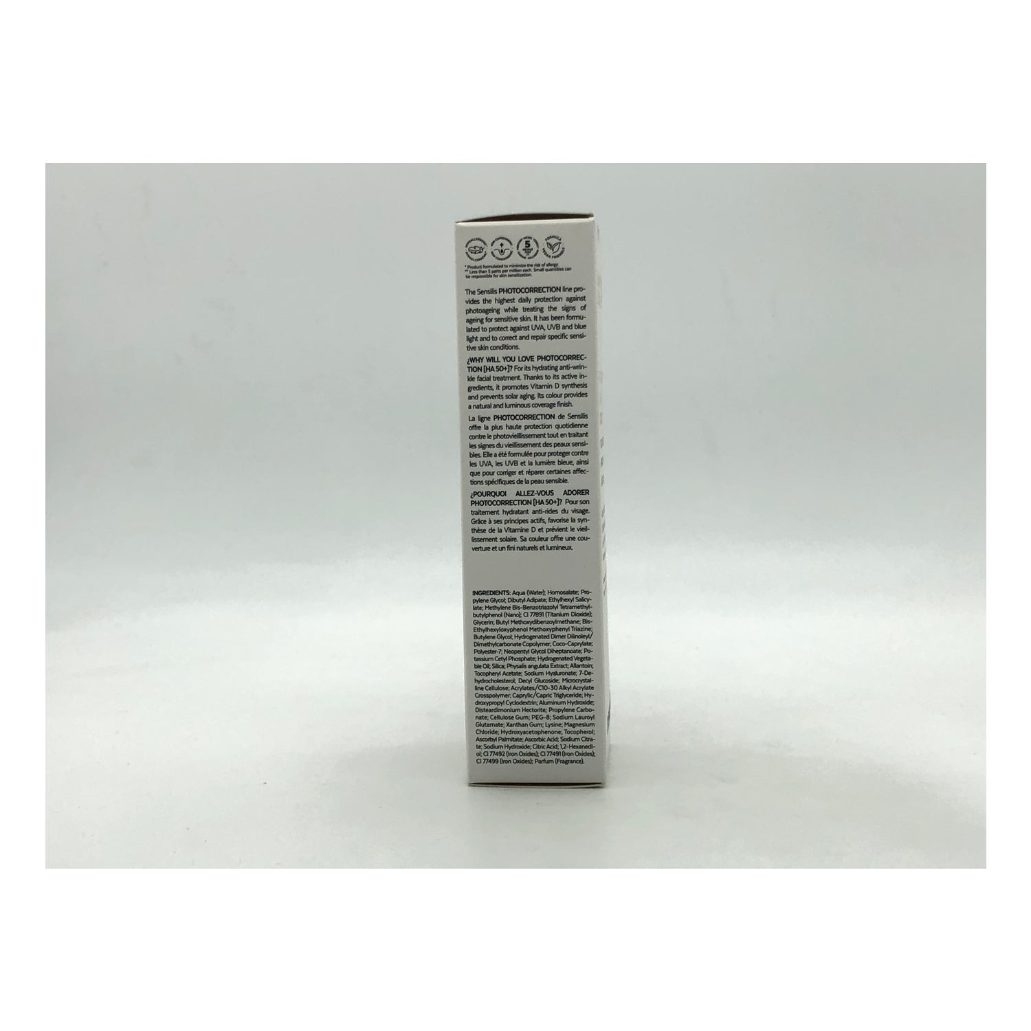 Również był testowany pod kątem pięciu metali ciężkich, a wszystkie produkty Sensilis zawierają zapachy bez alergenów. Zaleca się nałożenie równomiernie na twarz 30 minut przed ekspozycją na słońce i ponowne nałożenie po długotrwałej ekspozycji, intensywnym poceniu się lub po zmoczeniu lub osuszeniu.