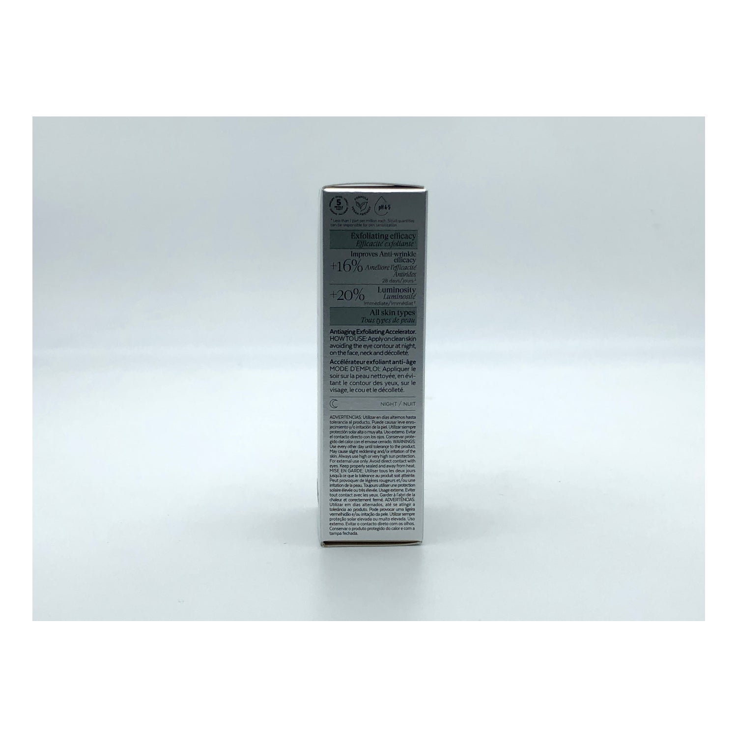 Sérum ultralíquido acelerador exfoliante antiedad que acelera la exfoliación de la piel para potenciar el resultado antiedad.