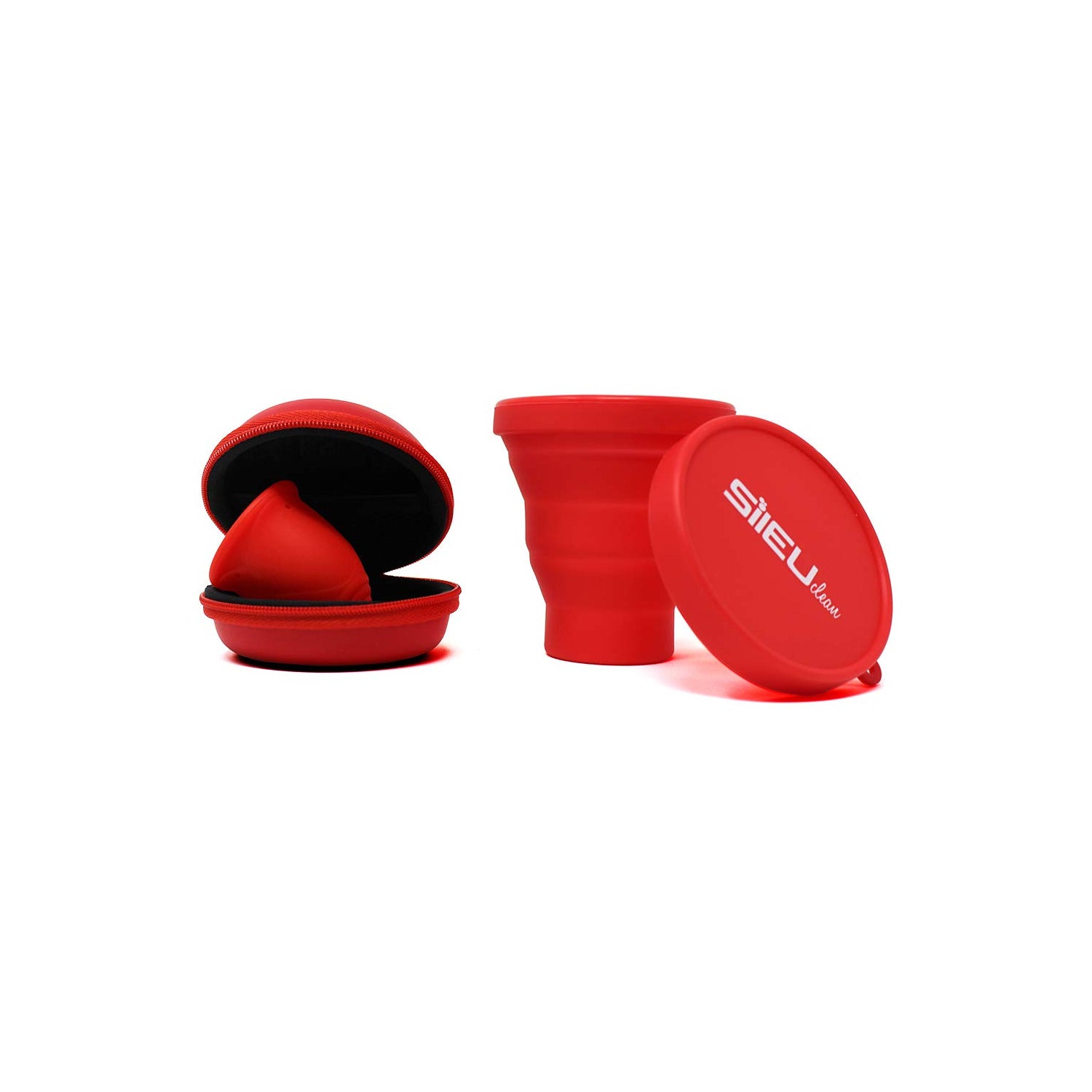 Sileu Kit Go Copa Menstrual + Estuche + Esterilizador Rojo L jest idealnym rozwiązaniem dla higieny intymnej kobiet podczas menstruacji, oferując wygodę i długotrwałą ochronę. Ten zestaw zawiera: