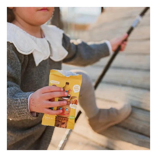 Przekąska dla dzieci wykonana w 100% z owoców uprawianych ekologicznie. Pomaga złagodzić objawy zmęczenia organizmu, dostarczając mu energii. Zawiera puree z jabłek i bananów, bez dodatku cukru, słodzików, glutenu i dodatków. Jest źródłem węglowodanów i białka, z niską zawartością tłuszczu. Pomaga uzupełnić zdrową dietę maluchów, o przyjemnym smaku i naturalnej konsystencji uzyskanej dzięki powolnemu pieczeniu. Posiada zabawne kształty, które stymulują rozwój dziecka.