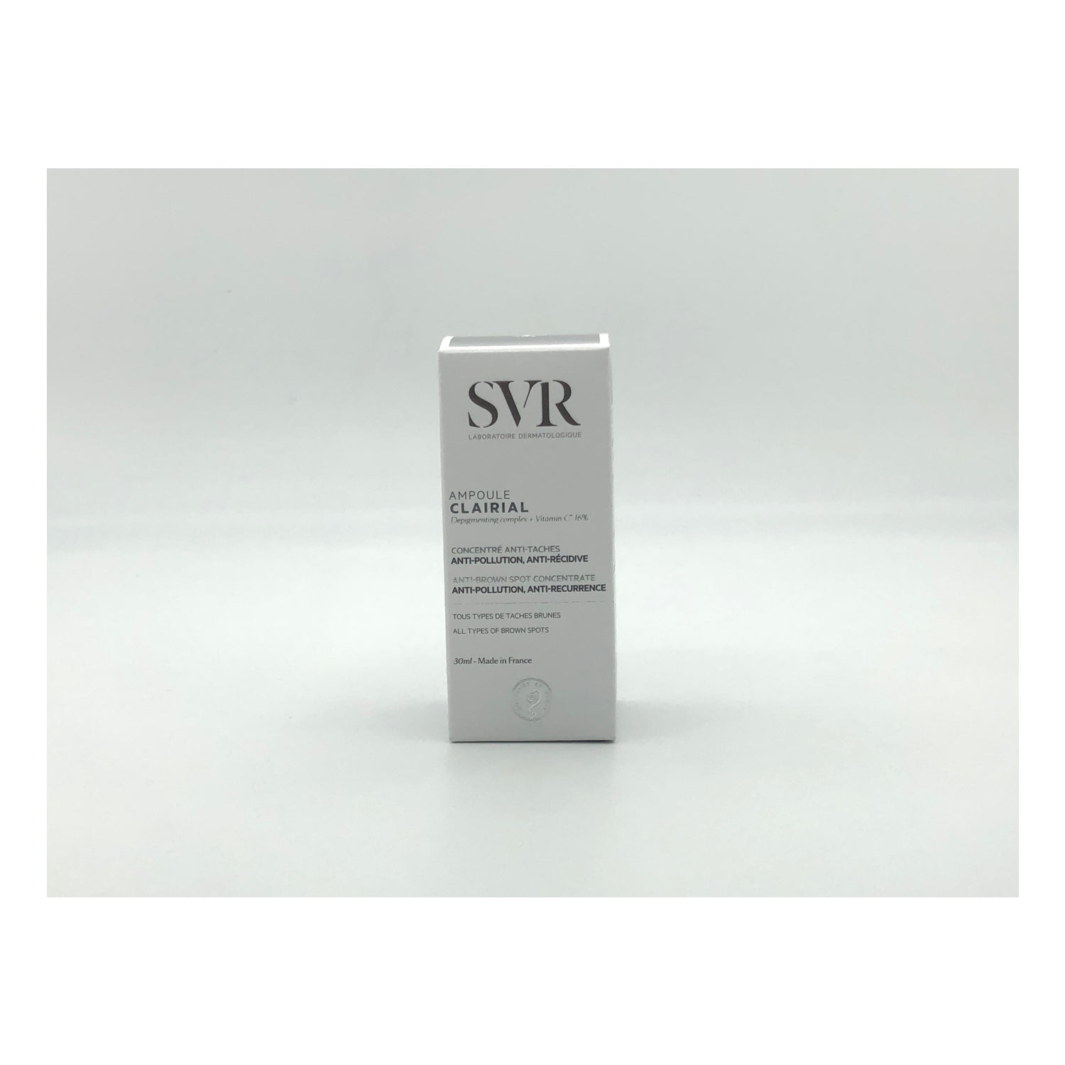 SVR Clairial Ampoule Concentrate 30ml to serum przeciw plamom, zanieczyszczeniom i ciemnym plamom, które pomaga widocznie korygować i redukować ciemne plamy , jednocześnie pomagając zapobiegać i ograniczać ich ponowne pojawienie się.