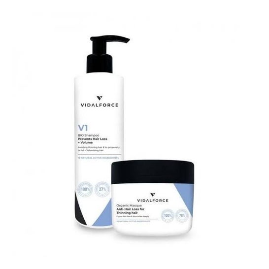 Ten zestaw do pielęgnacji i zapobiegania wypadaniu włosów Vidalforce to kompletna opcja oczyszczania i pielęgnacji. Produkt zawiera szampon, którego skład obejmuje ponad dziesięć naturalnych i ekologicznych związków. Wśród nich wyróżnia się korzeń bacalensis i żeń-szeń, między innymi. Zapewnia on również zdrowy i bardziej puszysty wygląd włosów. Natomiast maska zawiera kompleks 19 naturalnych składników, które zapobiegają wypadaniu włosów. Codzienne stosowanie sprzyja detoksykacji skóry głowy od wewnątrz na zewnątrz, dzięki zawartości ekstraktów z kwiatów. Ważne jest, aby zauważyć, że stosowanie tego szamponu i maski jest odpowiednie dla wszystkich rodzajów włosów i skóry, w tym farbowanych włosów (szczególnie wrażliwych).